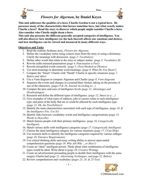 SDV - Online PDF Flowers For Algernon One Act Play Script Doc BookBoon
